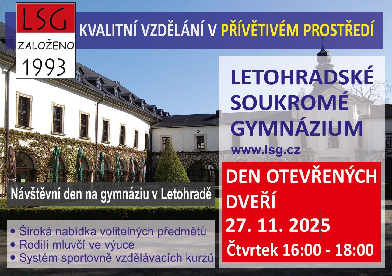 Letohradské soukromé gymnázium Vás zve na den otevřných dveří, které se koná ve čtvrtek 27.11. 2025 od 16 do 18 hodin.