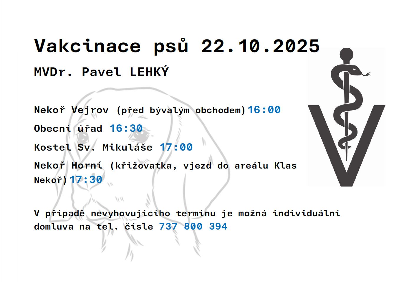 Dne 22.10. 2025 proběhne v obci očkování psů.