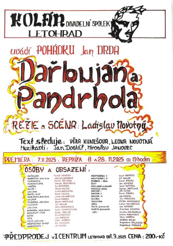 7.11. 2025 Divadlo Dařbuján a Pandrhola, začátek od 19 hodin, kulturní dům Letohrad.