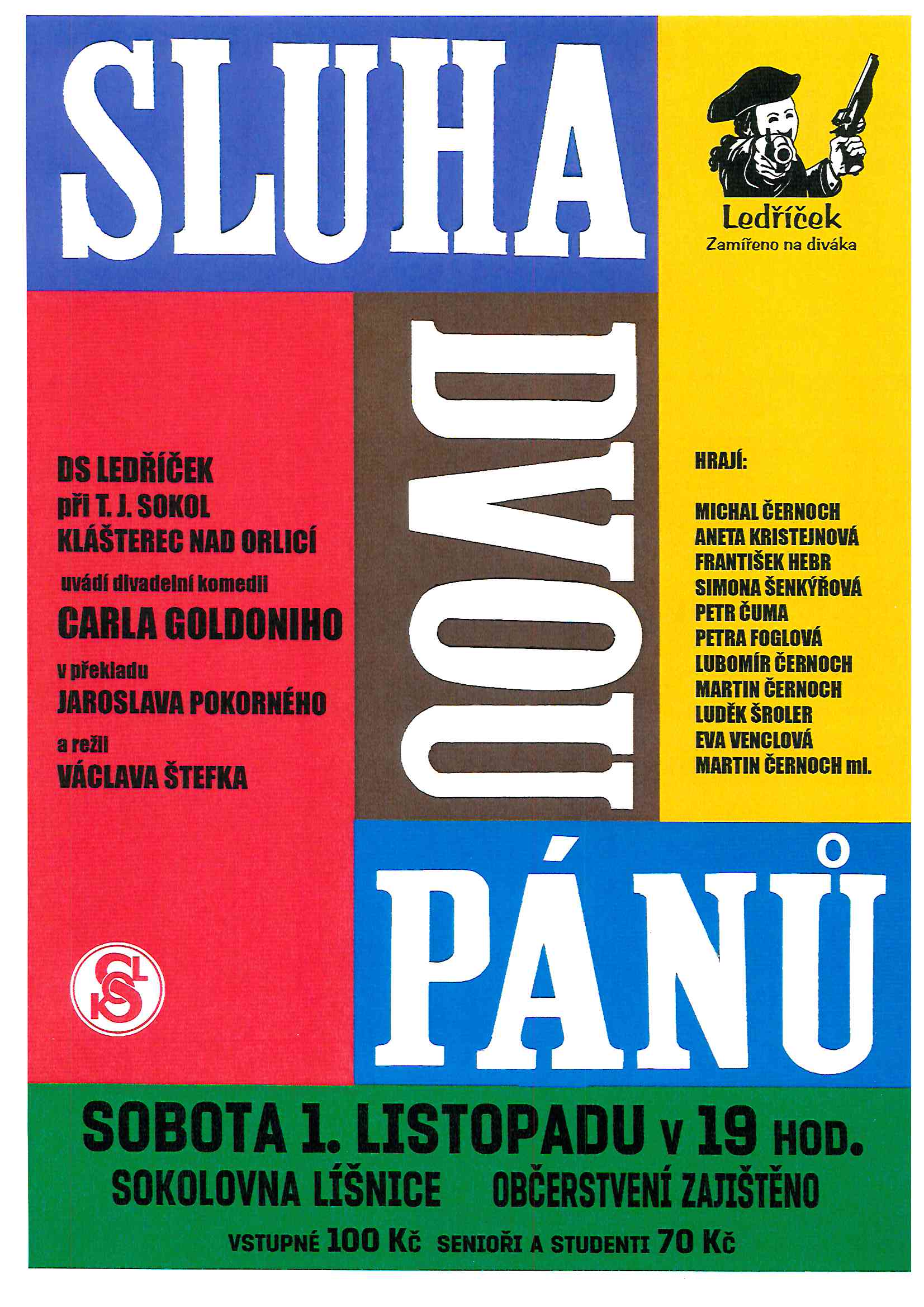 1.11. 2025 Divadelní hra Sluha dvou pánů, začátek od 19 hodin, sokolovna Líšnice.