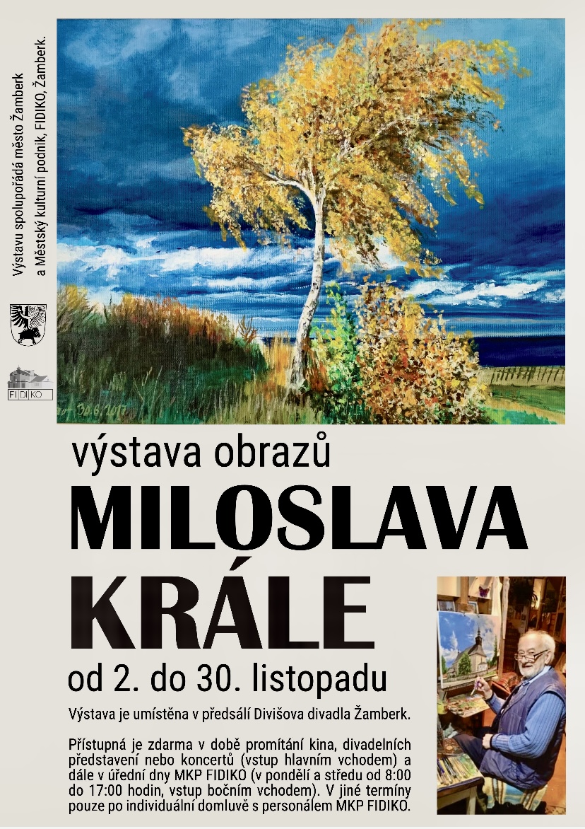2.- 30.11. 2025 Výstava obrazů pana Miroslava Krále v předsálí Divišova divadla Žamberk.