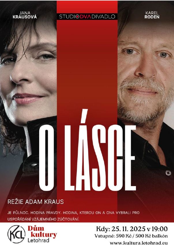 25.11. 2025 Divadlo: O lásce, začátek od 19 hodin, kulturní dům Letohrad