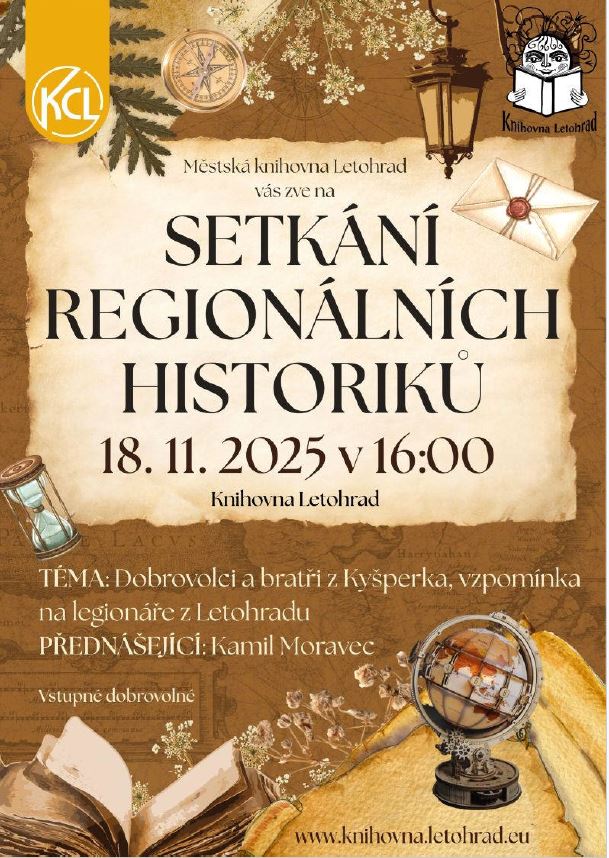 18.11. 2025 Setkání regionálních historiků, začátek od 16 hohin, knihovna Letohrad.