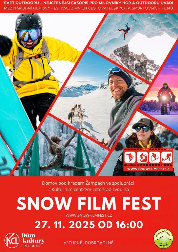 27.11. 2025 Akce: Snow film fest Letohrad 2025, začátek od 16 hodin, kulturní dům Letohrad.