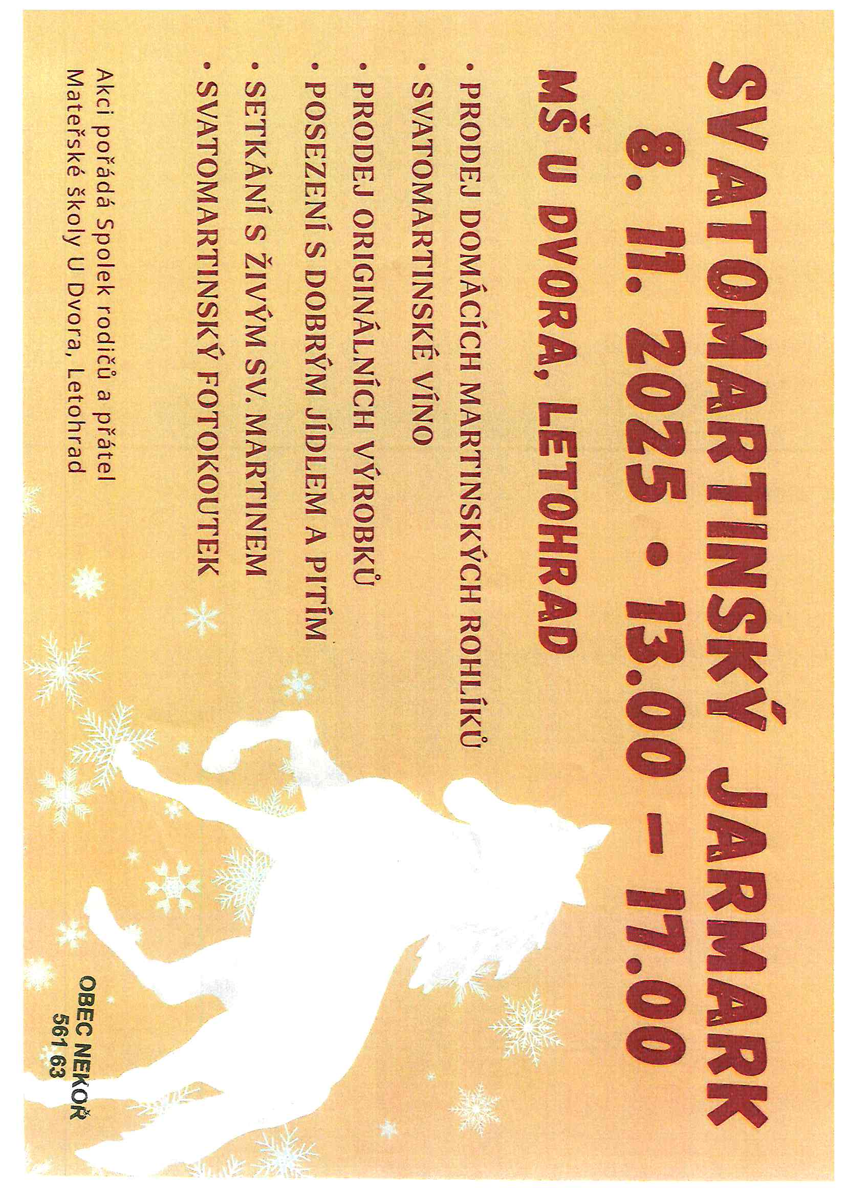 8.11. 2025 Svatomartinský jarmark, začátek od 13 do 17 hodin, MŠ U Dvora Letohrad