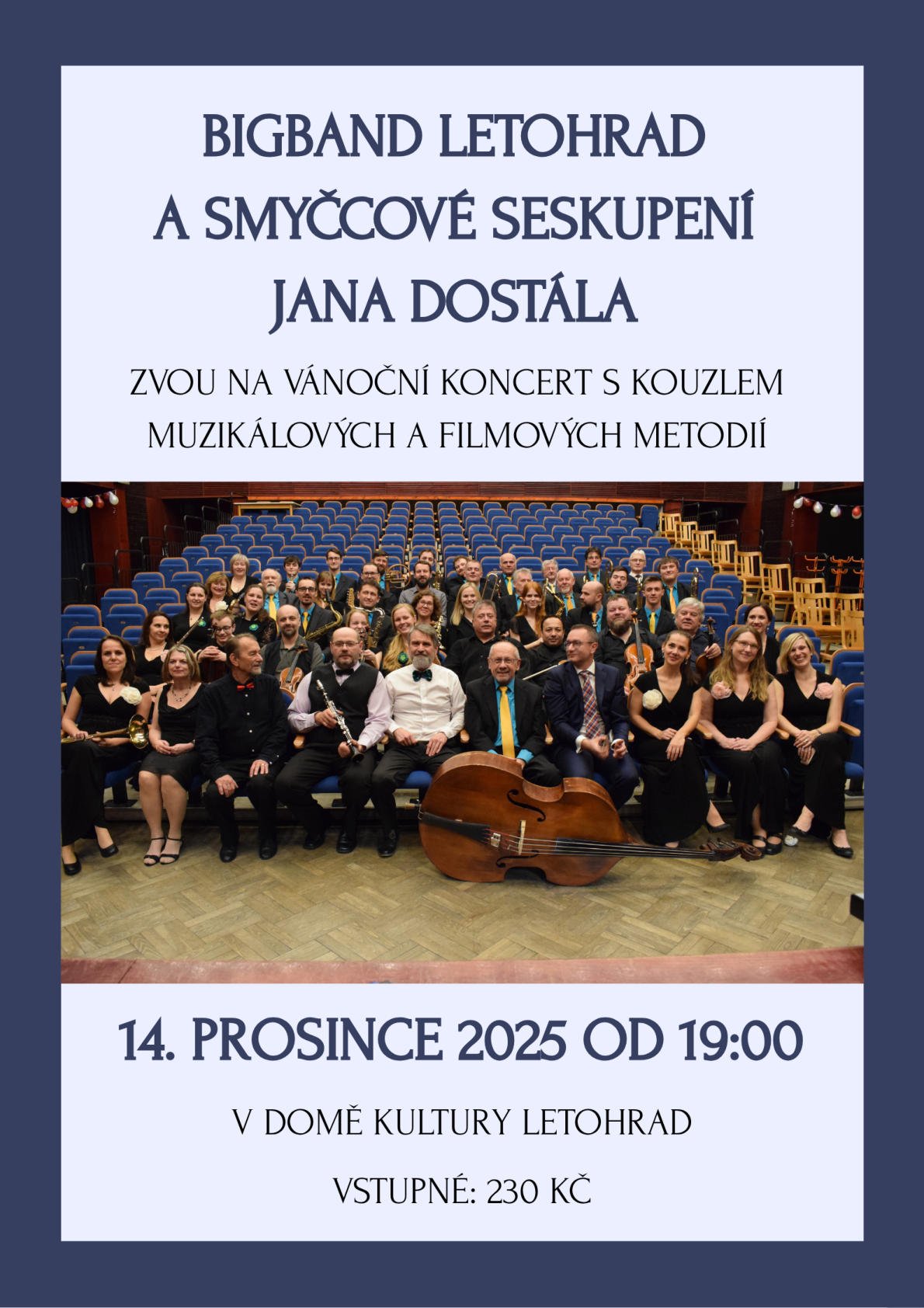 14.12. 2025 Vánoční koncert Bigband 2025, začátek od 19:00 hodin v kulturním domě Letohrad (VYPRODÁNO).