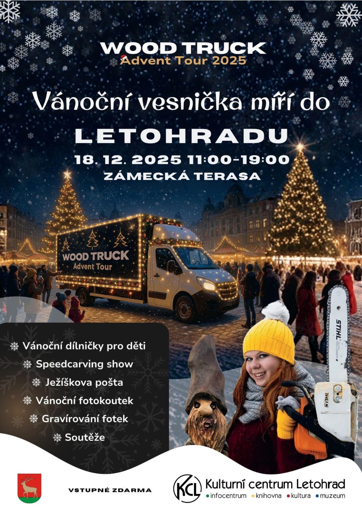18.12. 2025 Woodtruck advent tour 2025 - pojízdná vánoční vesnička plná radosti, tradic a zážitků. začátek od 11:00 do 19:00 hodin na zámecké terase Letohrad.