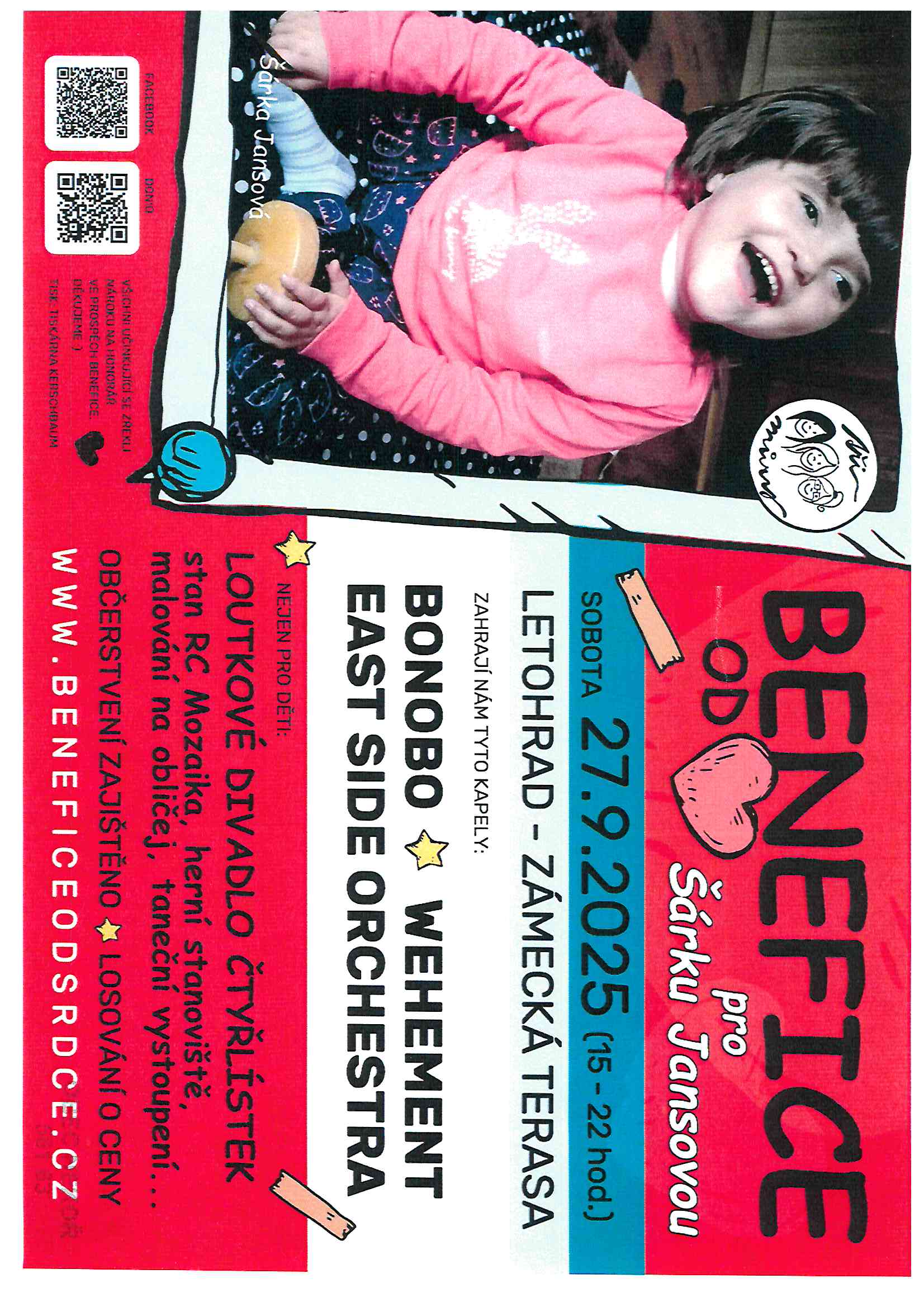 Benefice pro Šárkou Jansovou 27.9. 2025 od 15 hodin zámecká terasa Letohrad.