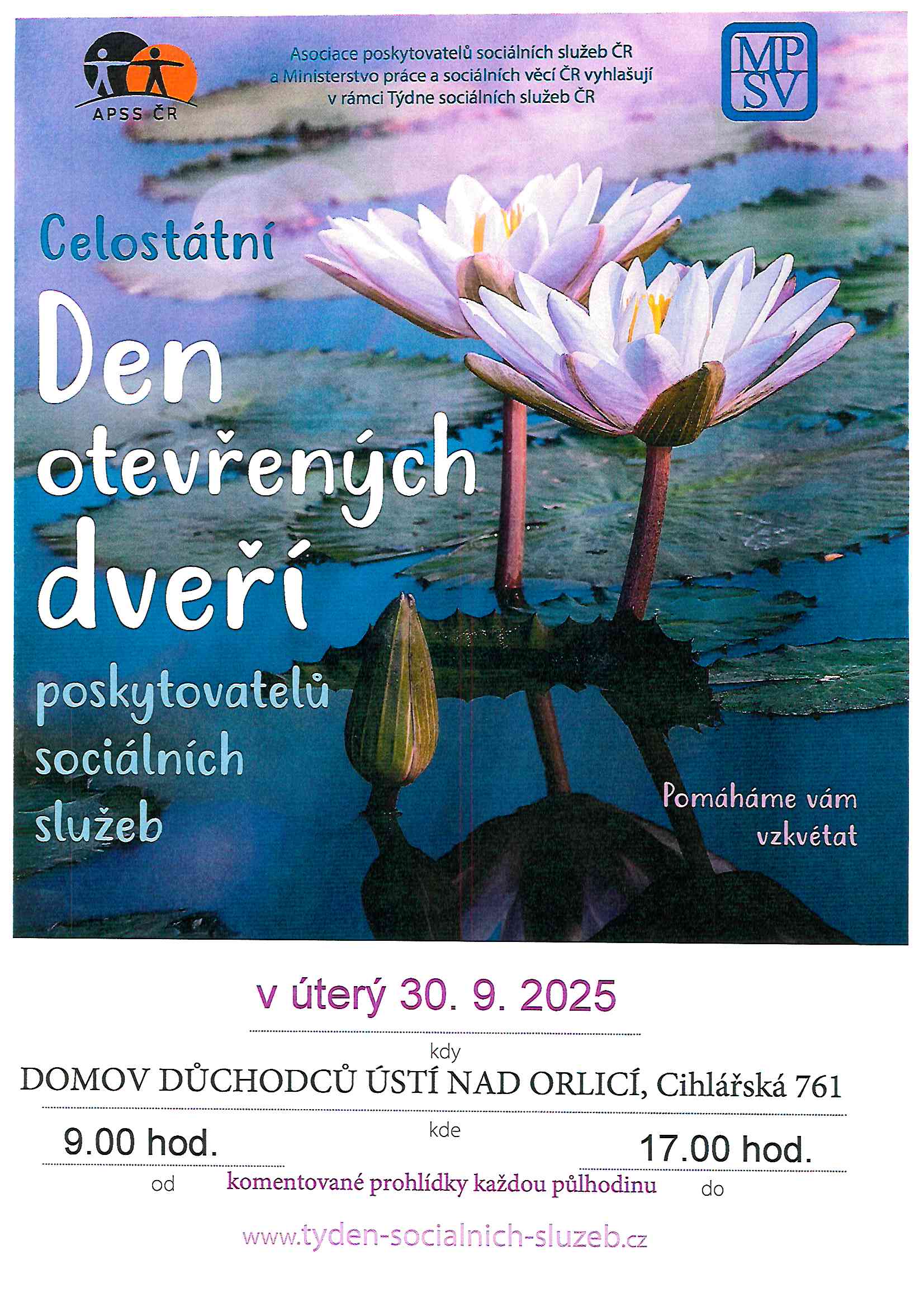Den otevřených dveří 30.9. 2025 od 9 do 17 hodin domov důchodců Ústí nad Orlicí.