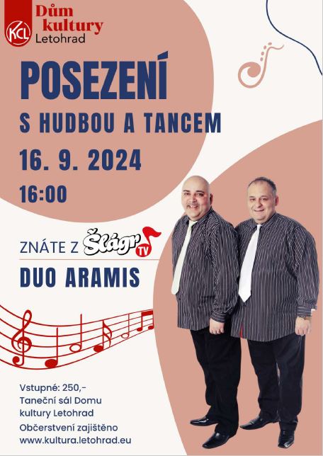 Posezení s hudbou a tancem 16.9. 2025 od 16 hodin v Kulturním domě Letohrad.