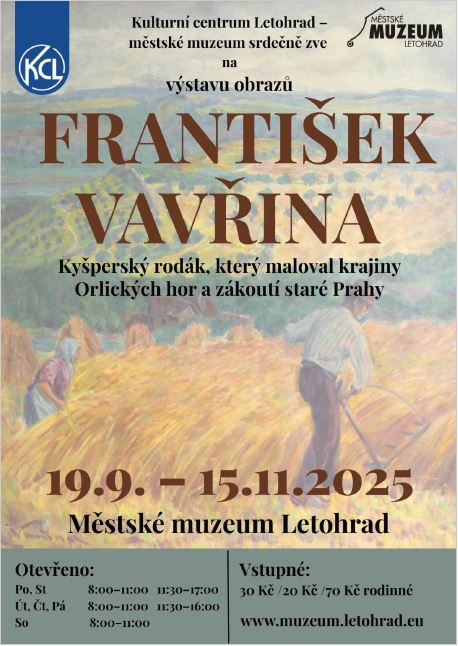 František Vavřina výstava obrazů 19.9. - 15.11. 2025 Městské muzeum Letohrad.