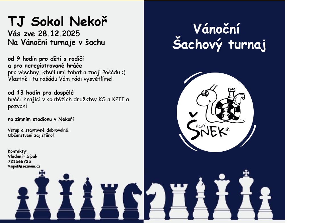 V neděli 28.12.2025 na zimním stadionu Nekoř od 9 hodin pro děti s rodiči a pro neregistrované hráče a od 13 hodin pro dospělé hráče hrající v soutěžních družstev KS a KPII a pozvaní.